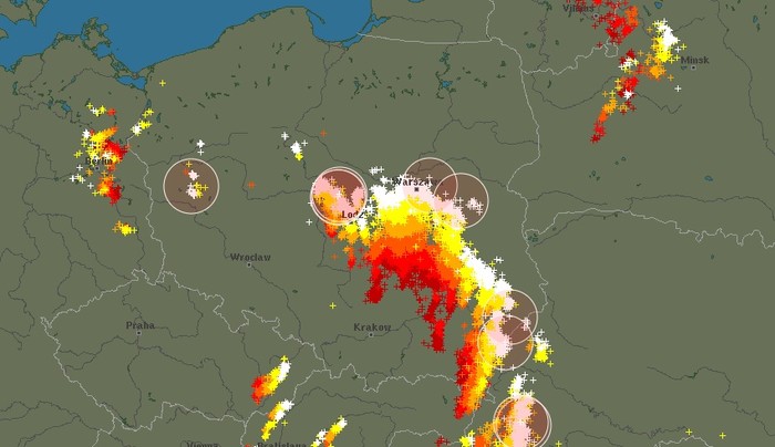 Radar burz pokazuje nie tylko obecne burze na żywo radar burzowy. Możemy również zobaczyć wyładowania, które powstały kilka minut lub godzin temu.